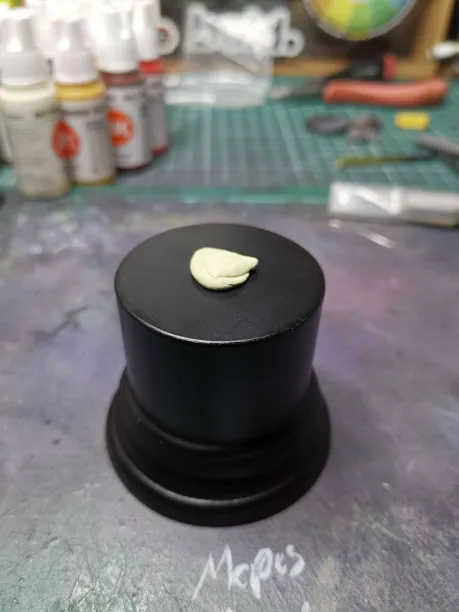 Fixation magnétique. Souvent utilisée dans le monde du Wargame, elle est simple à mettre en œuvre. Cependant si votre socle n’est pas assez aimanté la pièce peut basculer, si il est trop aimanté la pièce est dure à enlever du support.